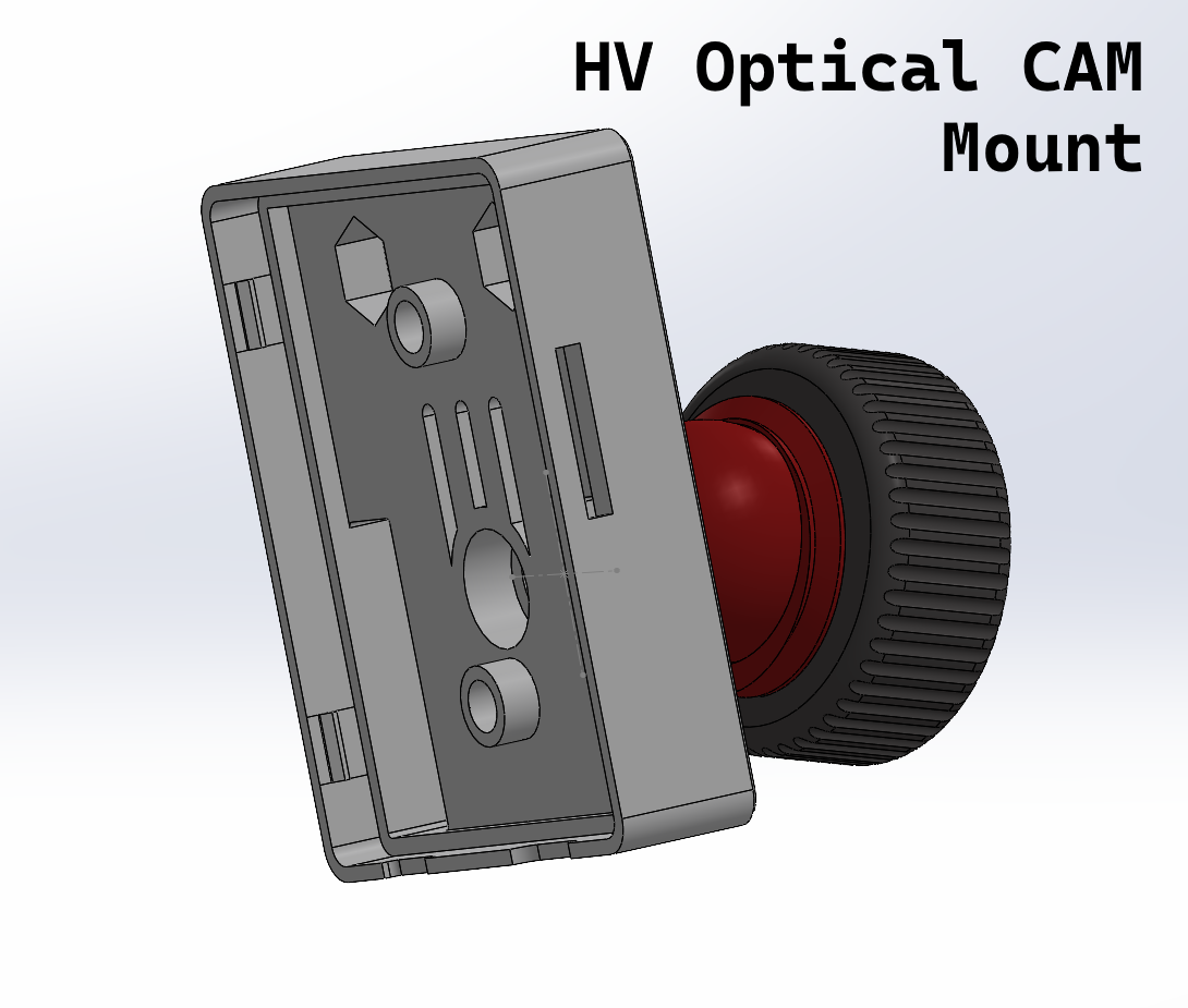 Even after the physical vehicle had been constructed based on our design, we still needed to integrate the necessary sensors to provide enough data for the autonomous model to succeed. These included several cameras, both optical and depth-sensing, LiDAR, encoders for wheel motion, a kill-switch feature, and much more. I designed several adjustable mounts for these components that were designed to slot into aluminum extrusions using the same drop-in tabs we used for the frame assembly. Some of these designs are pictured above.
