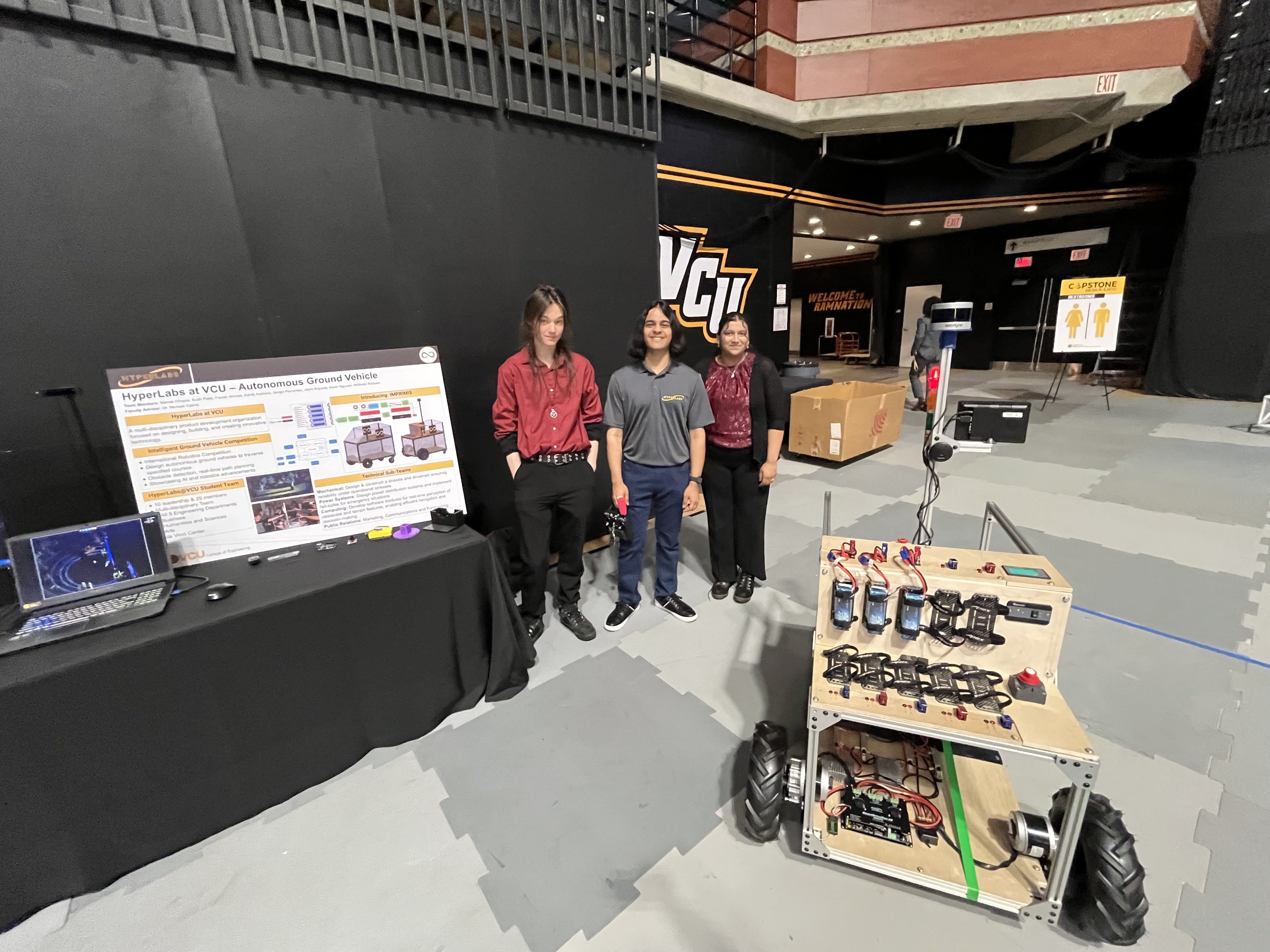 I traveled with other members of Hyperlabs to present our work at VCU's Capstone Design Expo for Fall 2024. This expo is intended for senior design projects and graduate research teams, however our organization was encouraged to submit our work by a number of professors in the College of Engineering. While we didn't make it to IGVC 2024, we still had an impressive prototype that exhibited powerful self-navigation abilities, and we spoke to several employers and research teams who were impressed with our progress in just under a year. Ultimately, the Capstone Expo was a fantastic experiene and I tremendously enjoyed the opportunity to see what other students were working on, as well as present my own work.