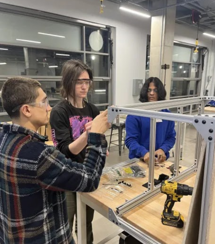 The use of aluminum extrusion made our design extremely easy to construct in our university Makerspace. We utilized drop-in inserts that allowed for quick assembly and easy resolution of mistakes. We worked over the course of a week to complete the frame assembly, then began working on the wood panels. These panels were sourced from a local hardware store then cut down to size using a mitre saw. From there, we shaped the panels using a router and jigsaw where necessary, before sanding the pieces smooth.