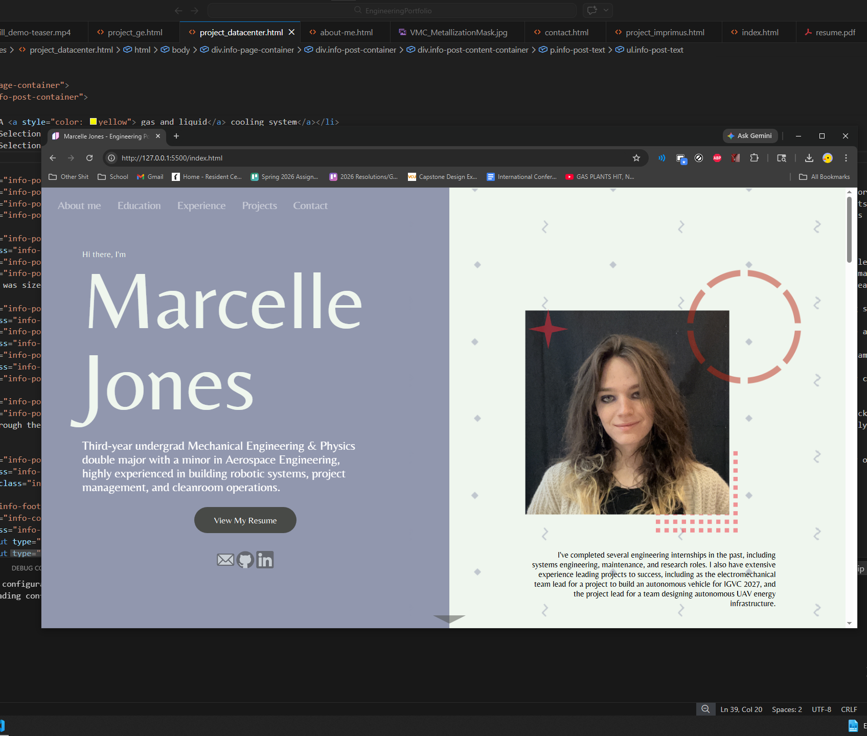 I'm constantly working on personal projects in addition to the academic and professional projects I've taken on.